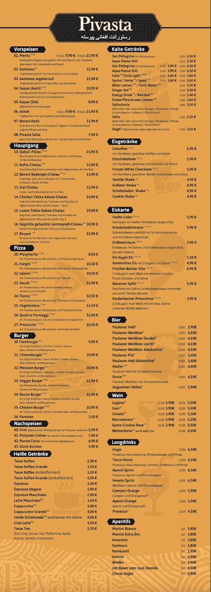 At Afghanisches Restaurant Pivasta München, the menu invites you to embark on a flavorful journey through authentic Afghan cuisine. Nestled in the heart of Munich, this cozy spot on Schillerstraße serves up a variety of traditional dishes, each crafted with care and a rich blend of spices. From savory kebabs to hearty stews, every bite transports you to the vibrant streets of Afghanistan, where food is not just a meal, but a celebration of culture.